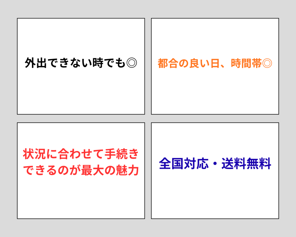 店頭のように数時間待たされることがなく、自分の好きなタイミングですぐに手続きを開始する事が出来る。